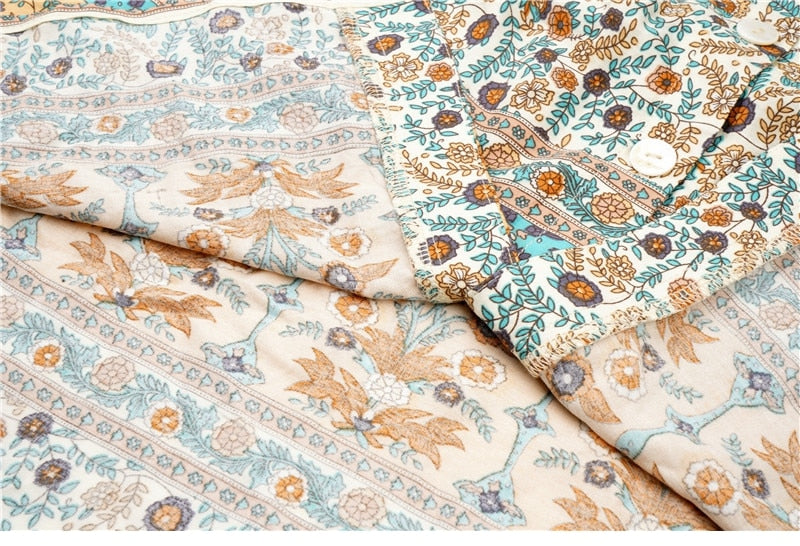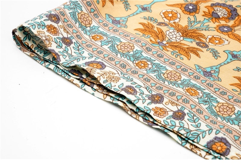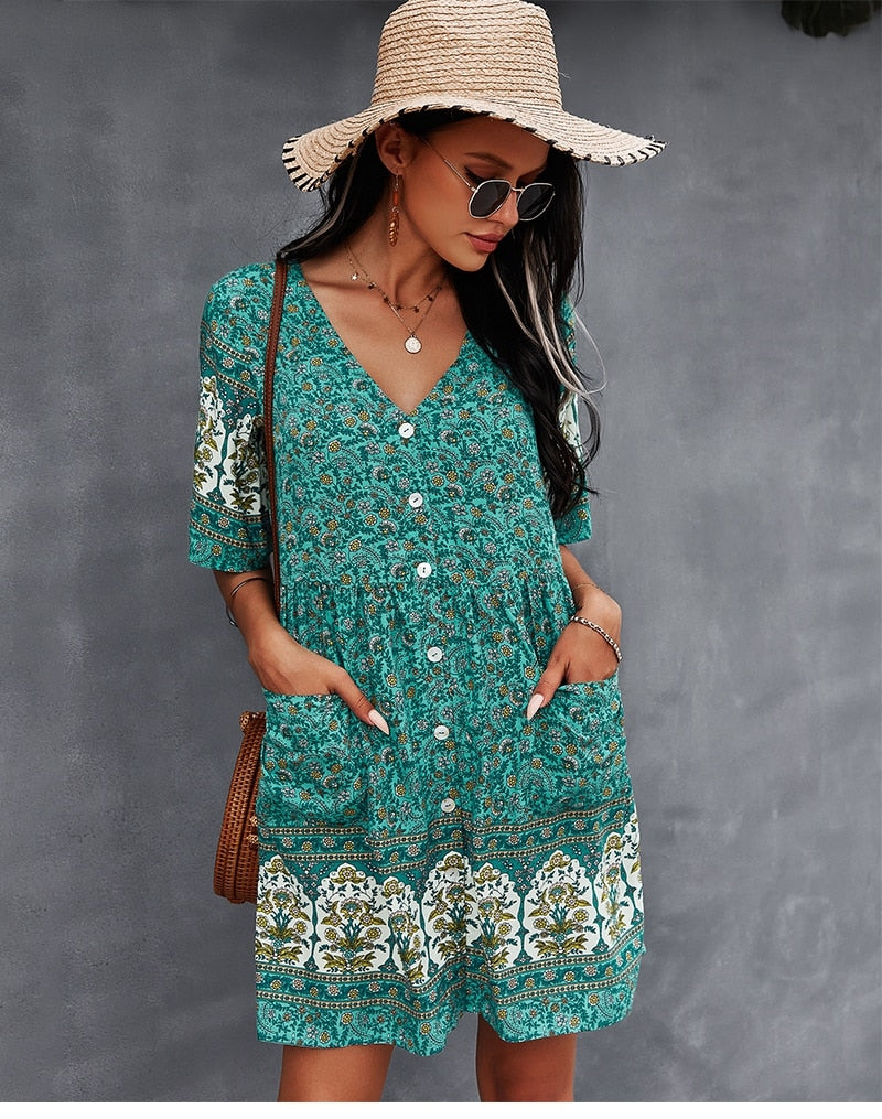 New Floral Print Summer Casual V Neck Bohemian Short Sleeve Dress For Woman