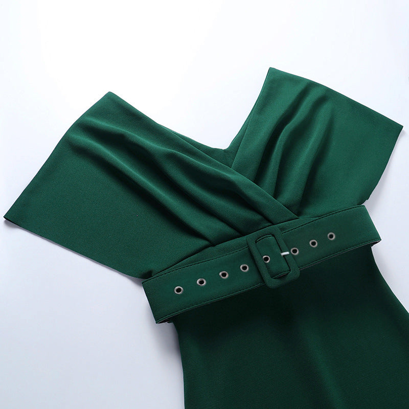 Off-Shoulder Elegant Party Ladies Vintage Evening Formal Midi Dress