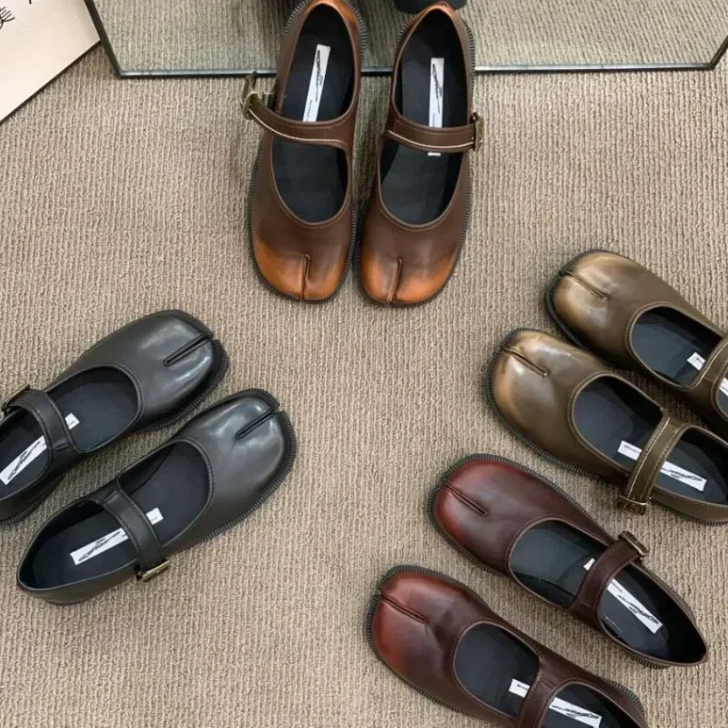 Pia Vintage Ombre Look Split Toe Maru Janes Flats