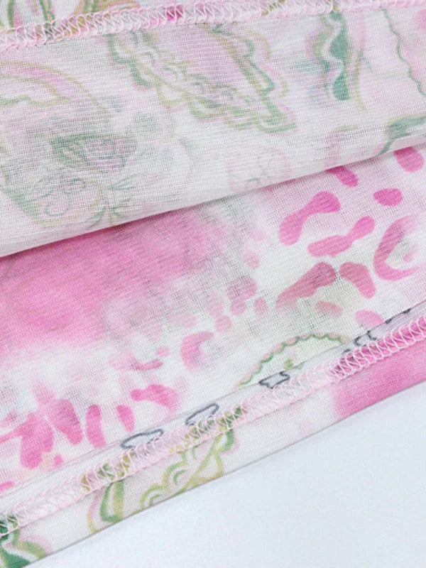 Pink Y2K Printed Bandage Tube Top & Mesh Mini Skirt Set