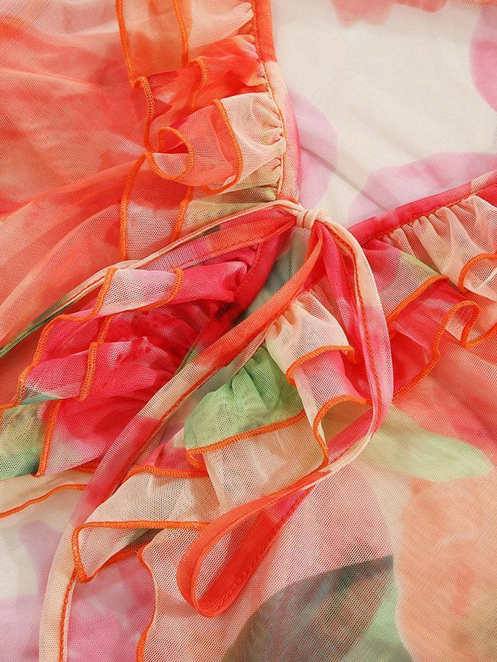 Description: Stay ahead of the fashion curve with our trendy Plunge V Neck Chiffon Blouse. Perfect for street-style looks. this blouse features a flattering Plunge V Neckline and long sleeves for a chic and sophisticated look. Made from a comfortable Polyester Blend fabric. it offers a regular fit that suits your everyday activities. The printed allover design. ruffle trim. open front. and flared cuffs add a touch of elegance and playfulness to your outfit. Embrace fashion-forward style with this must-have blouse.