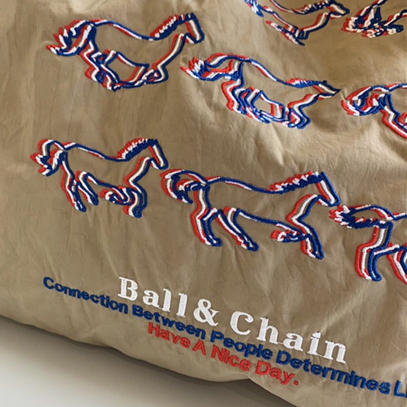 Running Horses Embroidery Casual Canvas Tote
