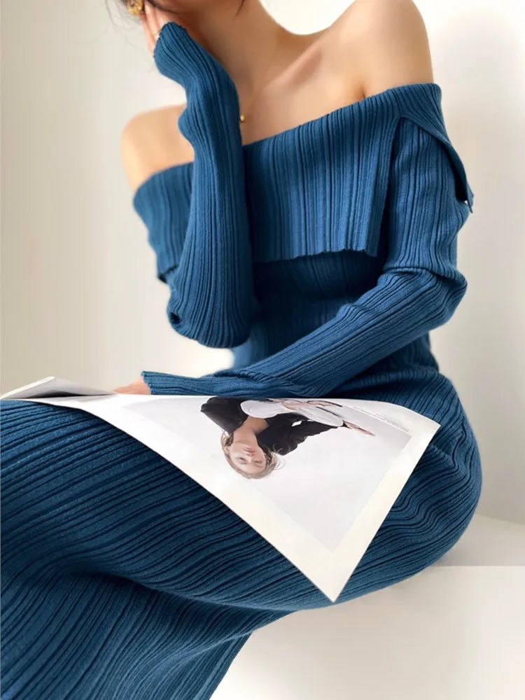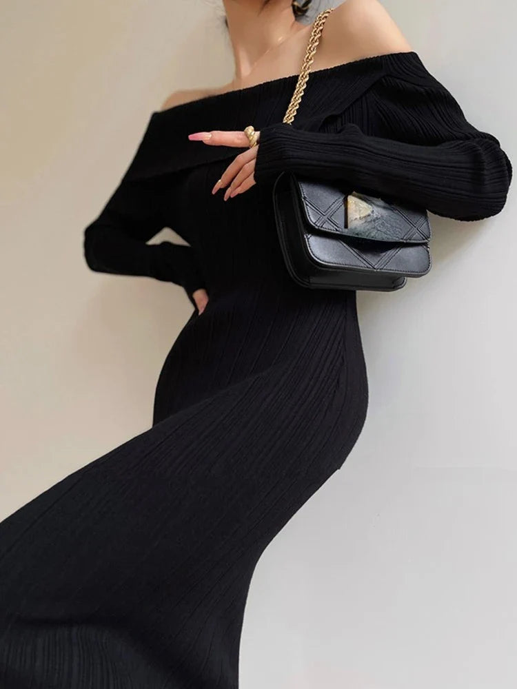 Sexy Knitted Autumn Elegant Solid Chic Evening Bodycon Dress