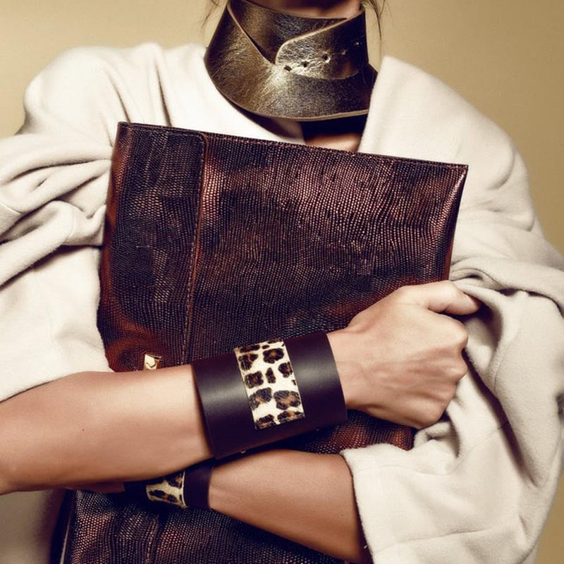 Sian Animal Print Cuff Leather Bracelet - 6 Patterns. Cool large cuff style leather bracelet with leopard print & fur textured band details. Simply impactful style item that works with solid basics and more.