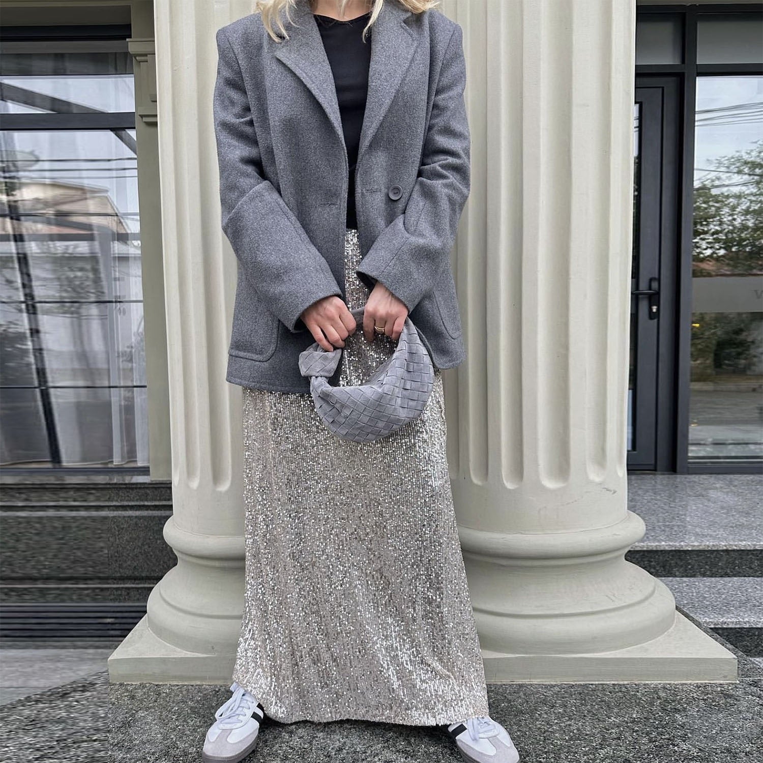 Shine bright like a diamond in the Syren Glitter Metallic Sequin Maxi Skirt! This eye-catching skirt is perfect for a night out or a special occasion - feel the sparkle wherever you go! Super stylish and dreamy. you'll be on everyone's envy list. Get your shine on! 💫 Lined.