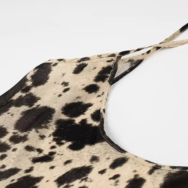 Get ready to "moo-ve" some heads with the Tena Paint Splash Tie Dye Slip Dress. Channeling cow hide or animal print vibes with its tie dye print. this basic yet sexy slip dress will look stylish to any look. Casually or dressed up this slip dress should be in anyone's closet.