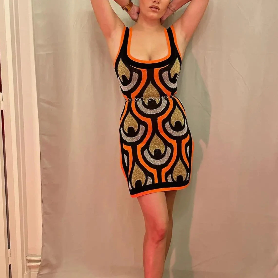 Add some dazzle to your wardrobe with the Terra Colorful Knit Tunic and Pants! Crafted from lustrous knit fabric in a bold peacock feather print. this set will infuse your outfits with vibrant hues. Its easy fit and quirky style make it ideal for both a fun outing or a chill night in.Rock this set separately or together for a fabulously stylish look at any occasion.