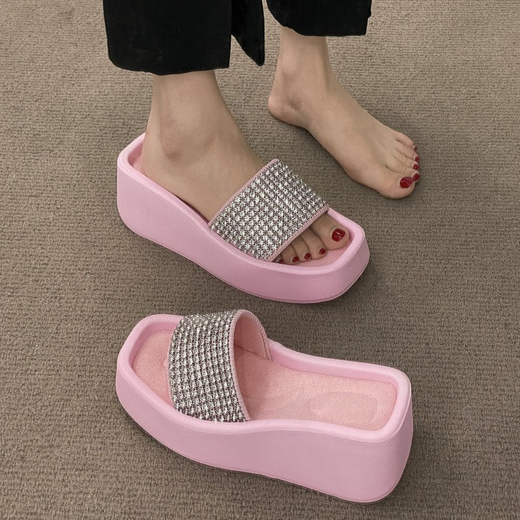 Thierry Rhinestone Sequin Upper Platform Slippers - 2 Colors