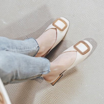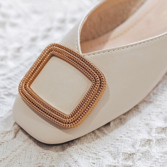 Torv Minimalist Mule Slippers - 3 Colors. Beautiful solid color faux leather mule slippers for square geometry lovers. Square toes. square buckles and square wooden look heels! Elegant tulip fold opening. Comes in 3 beautiful minimalist colors - Ivory. Ballerina Pink. Black