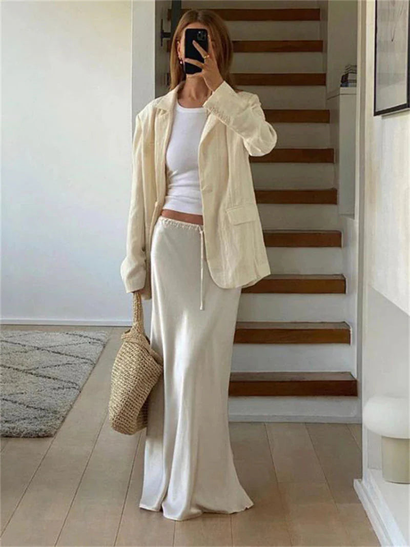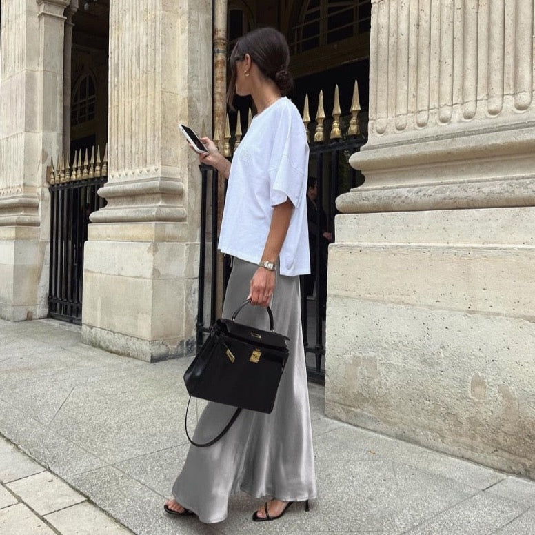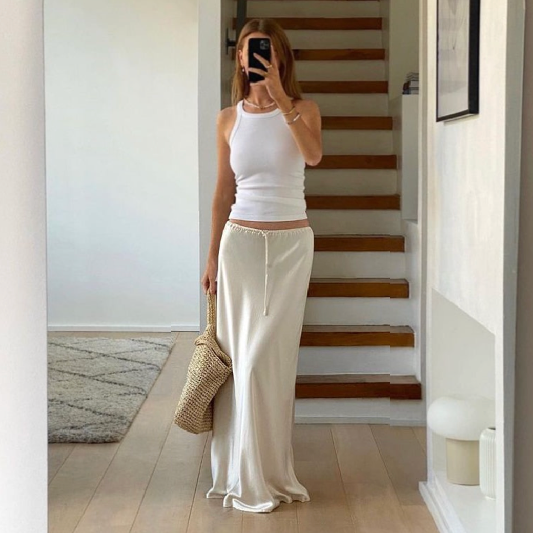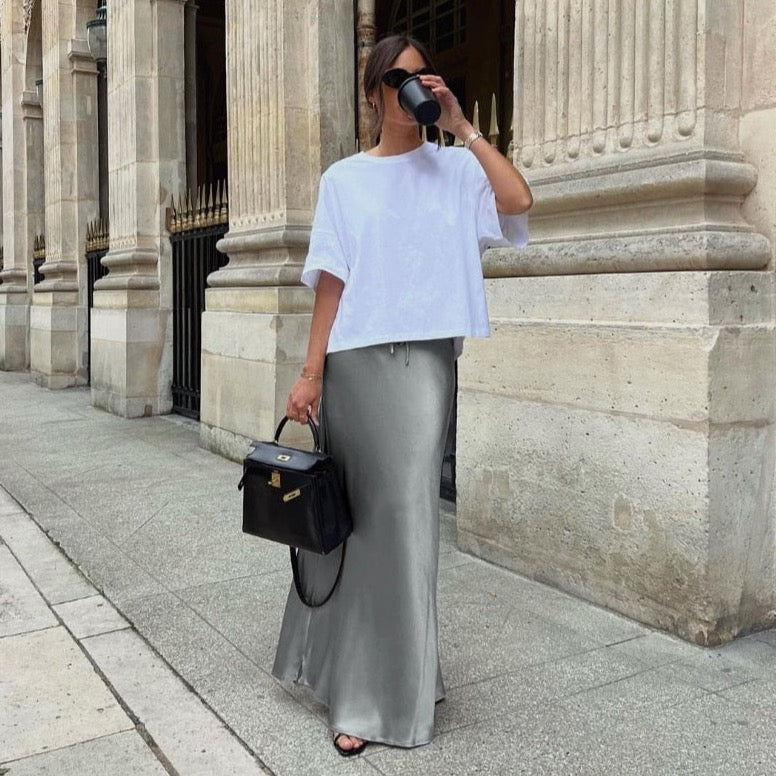Tossa Draw String Waist Maxi Satin Skirts - 7 Colors