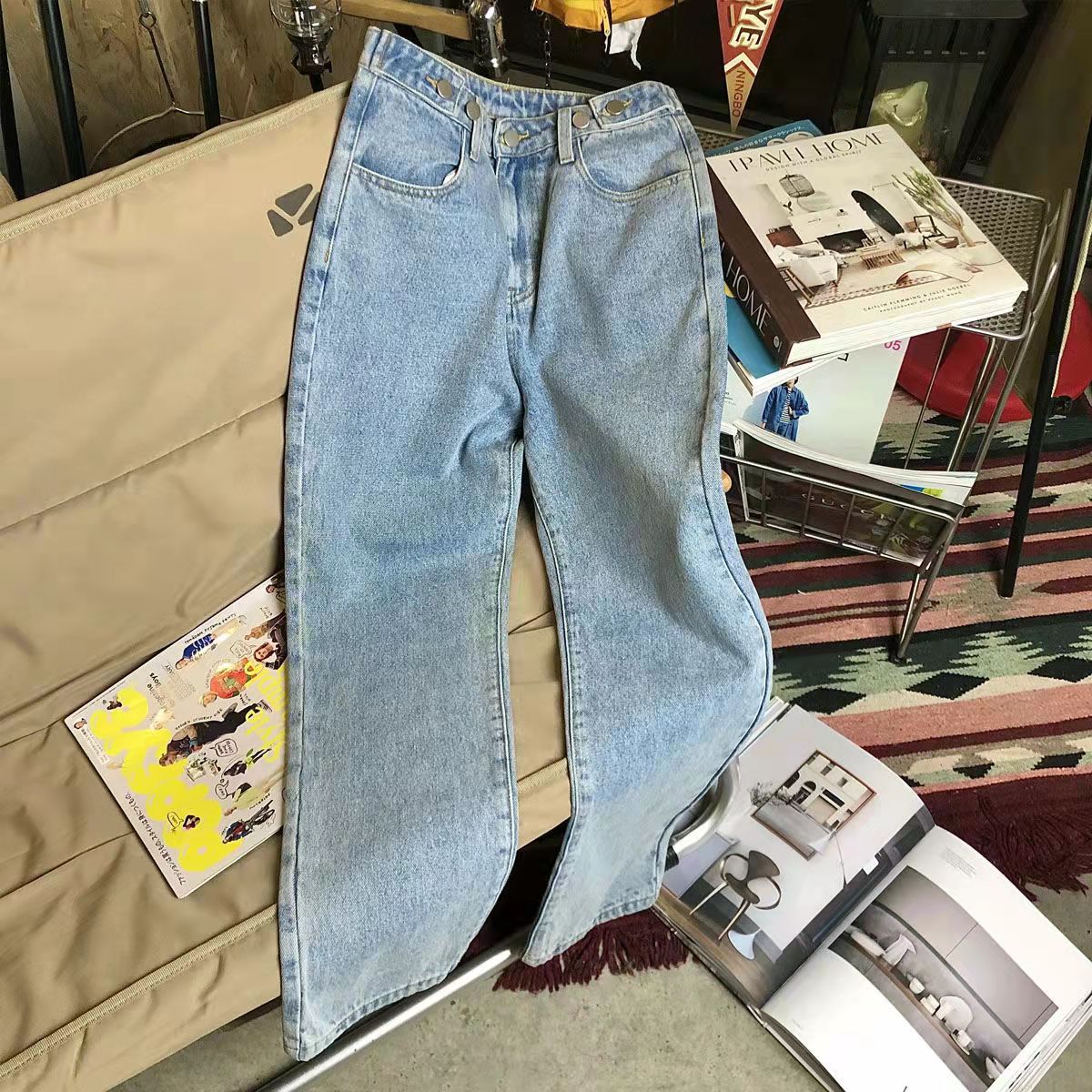 Tulips Print Back Pocketed Jeans. Popular high waisted light blue jeans with vintage tulip flower printed big back pockets. How unique! Extra buttons at the waistline for adjustment and darted back to flatter your waistline. You've got your flower back. You are now front and back pretty.