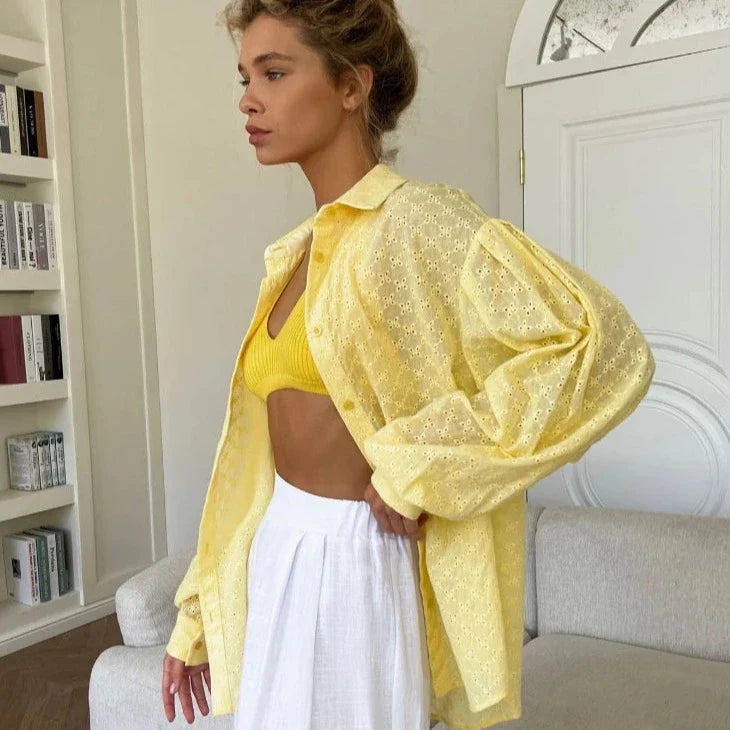 Introducing a playful addition to your wardrobe - the Tusie Grid Pattern Cotton Puff Sleeve Blouse. This blouse features a unique grid pattern and playful puff sleeves. adding a touch of fun and style to any outfit. Made with soft. comfortable cotton for all-day wear.