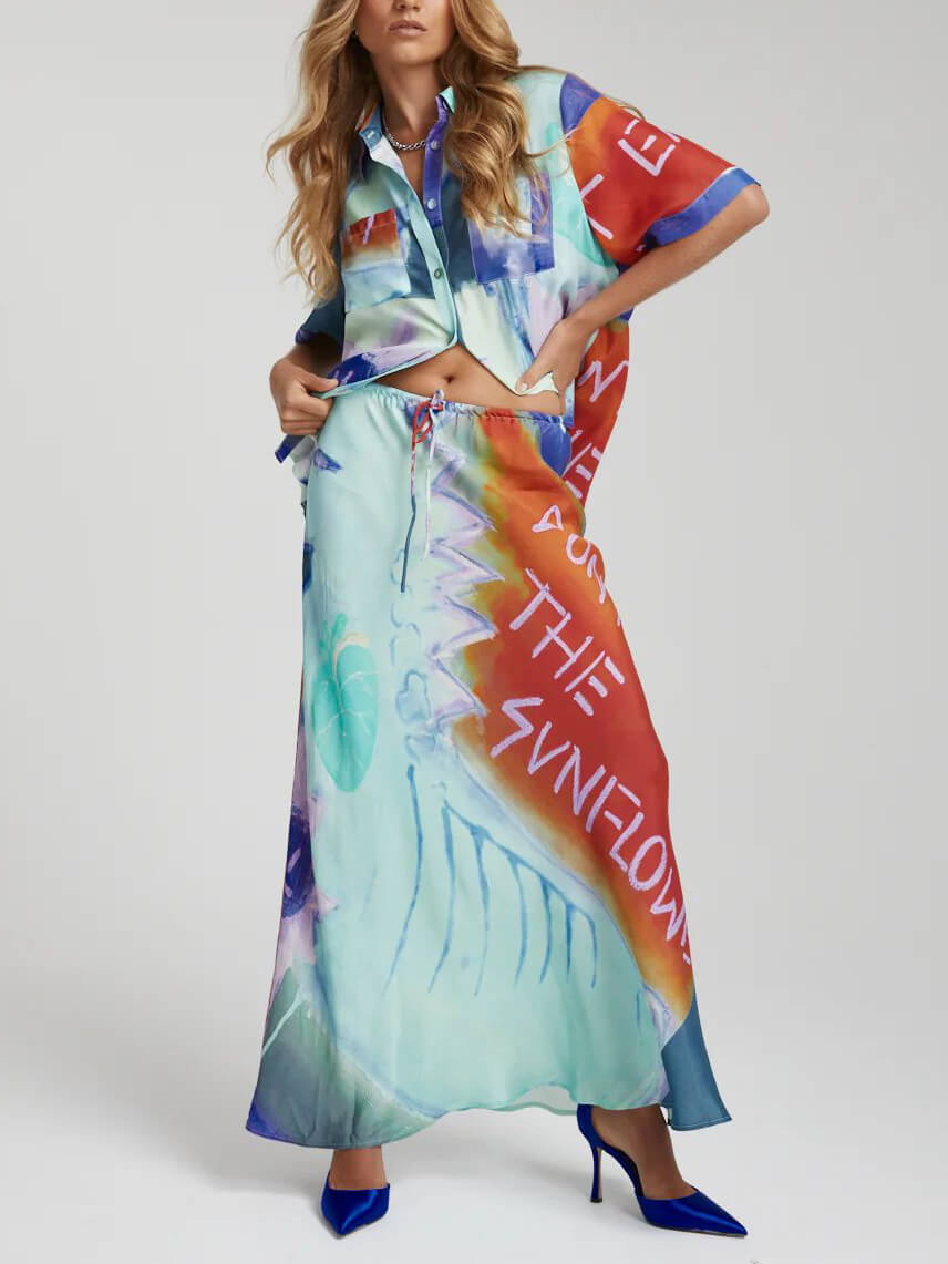 Unique Ink Floral Print Short-Sleeved Loose Shirt