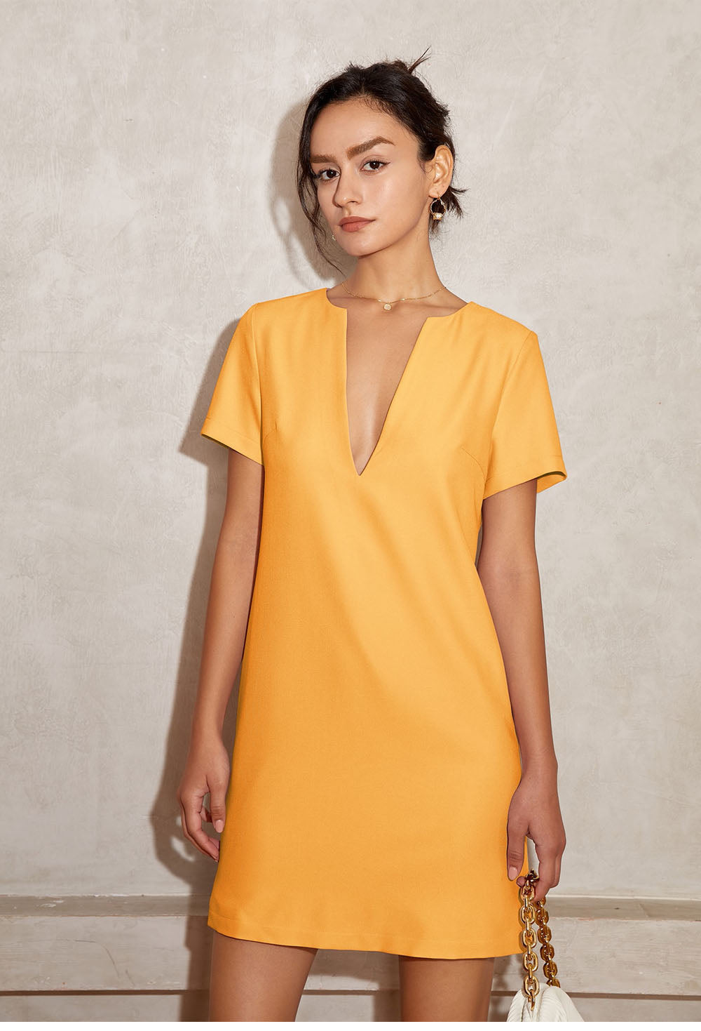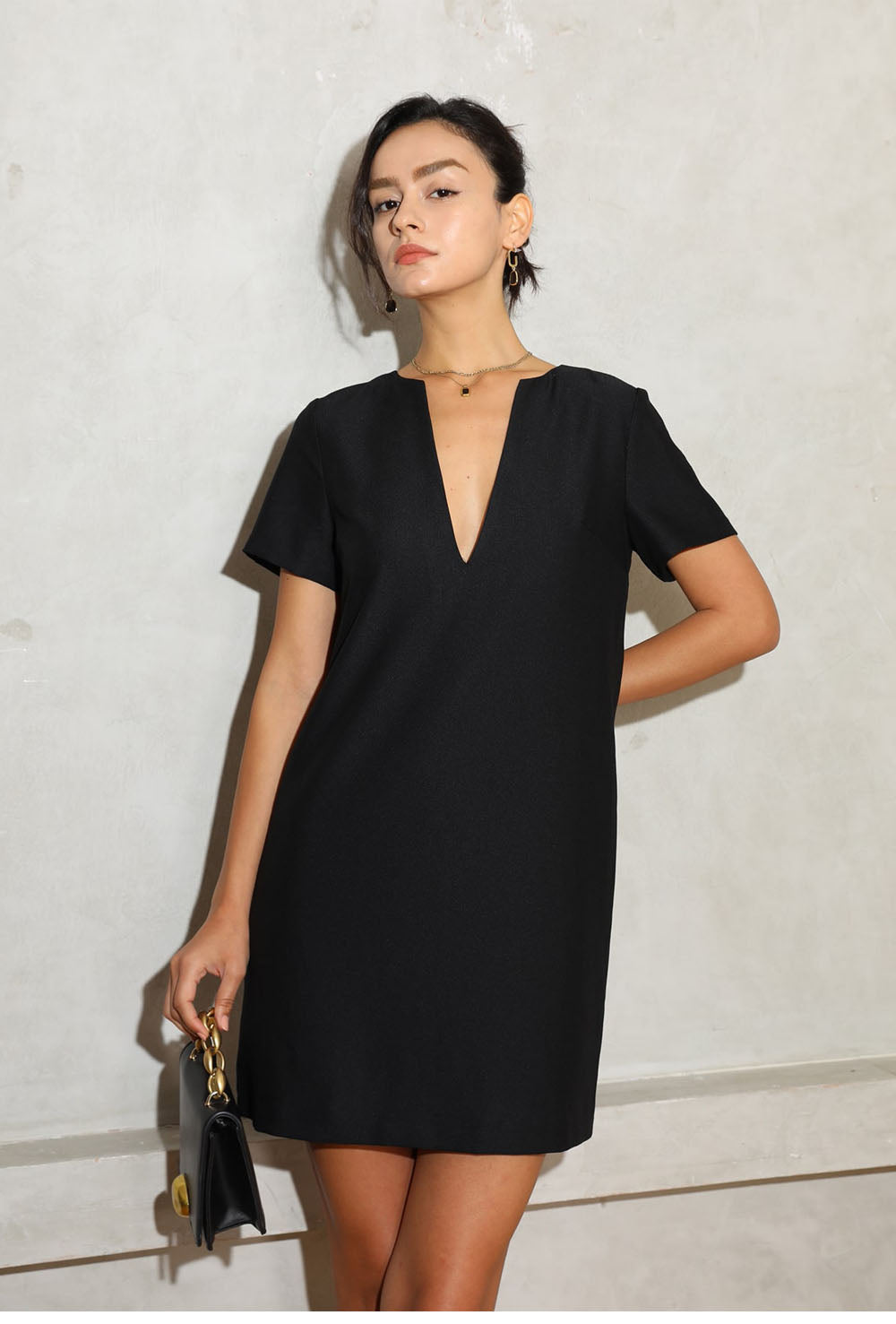 Vanessa V-Neck Solid Tunic Mini Dress - 7 Colors. This simple and clean line solid dress with deep V-neck and a back slit is sexy and it could be all you want ro wear out during the summer or more. Basic mini dress piece like this is unexpectedly stylish and versatile for any occasions.