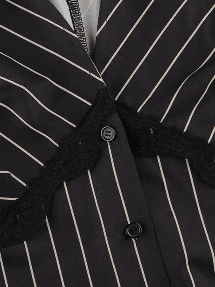 Delicate Lace Accents: The lace detailing adds a touch of femininity and romance to this long sleeve blouse. The intricate lace along the sleeves or neckline creates a captivating contrast against the striped fabric. elevating the overall aesthetic.