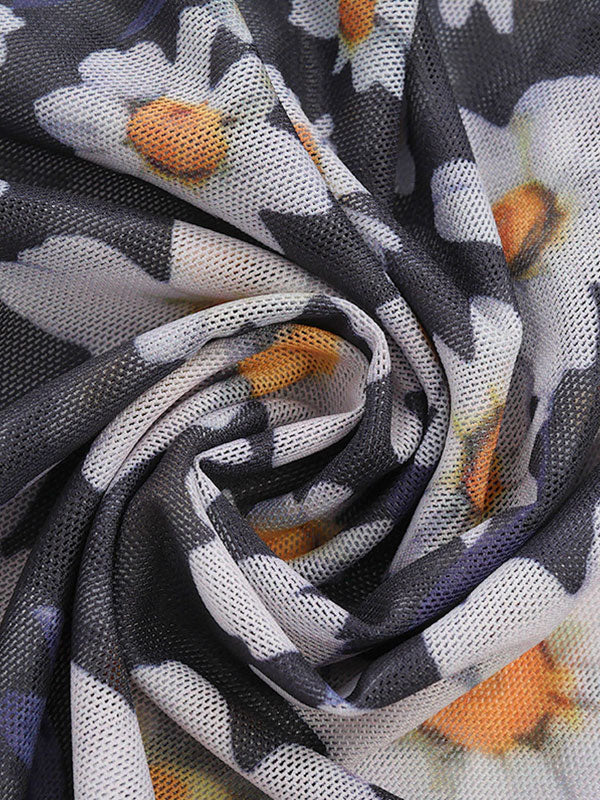 Vintage Mesh Slim Maxi Dress with Daisy Print