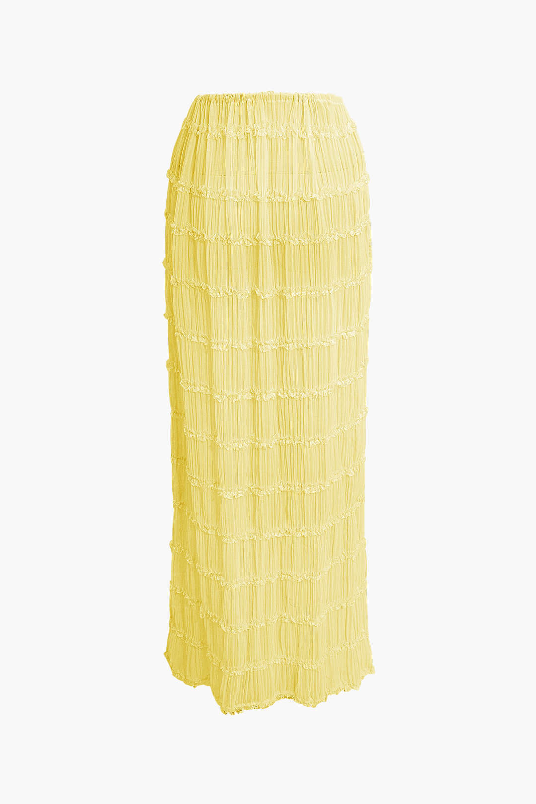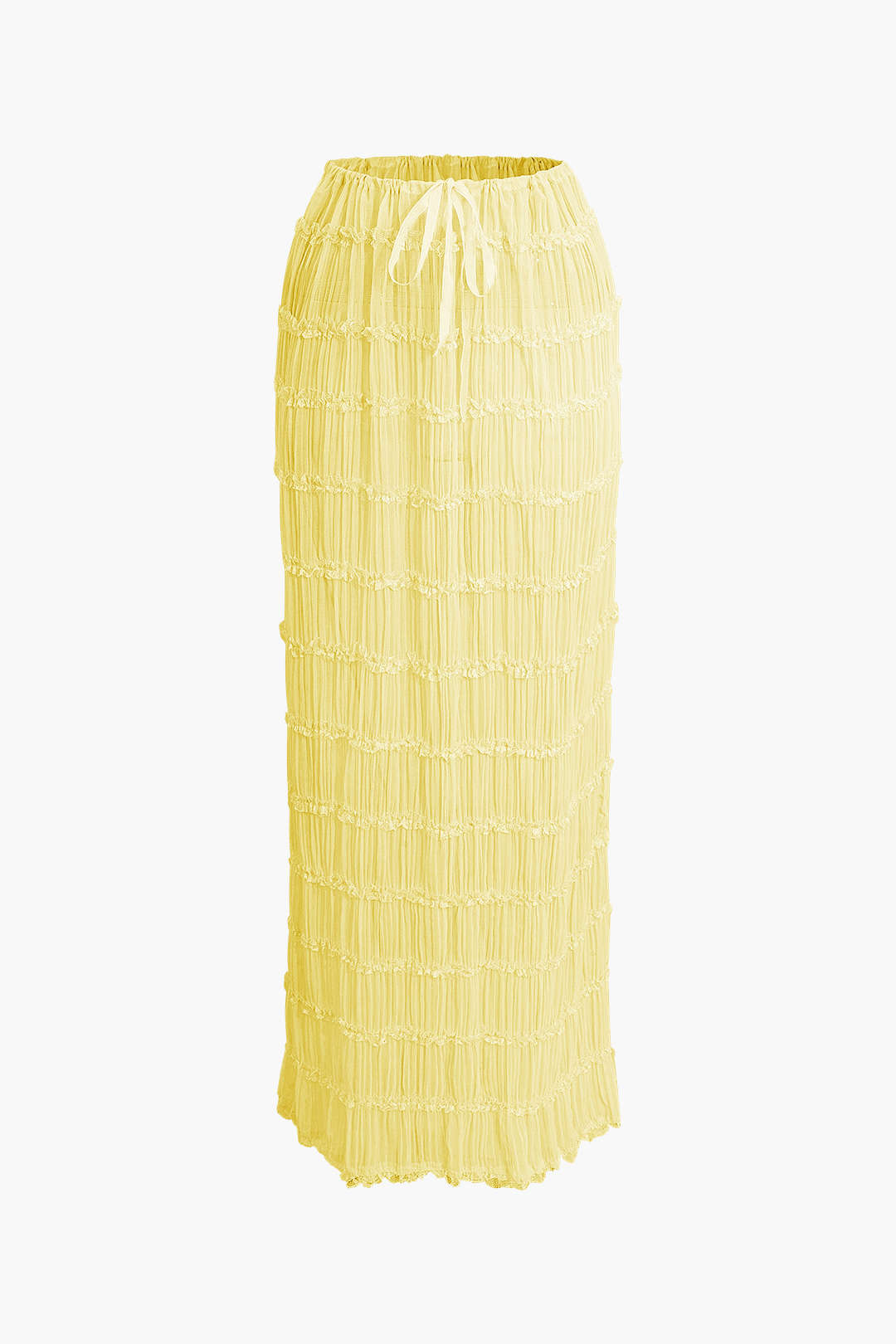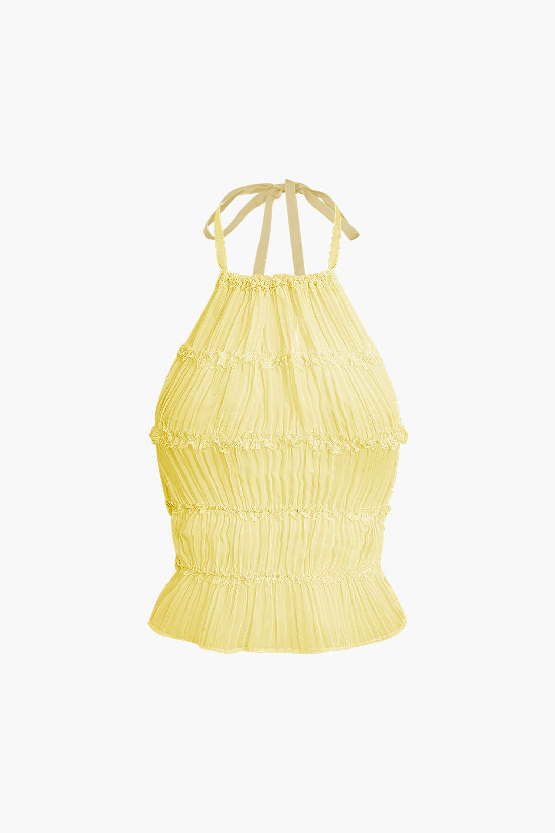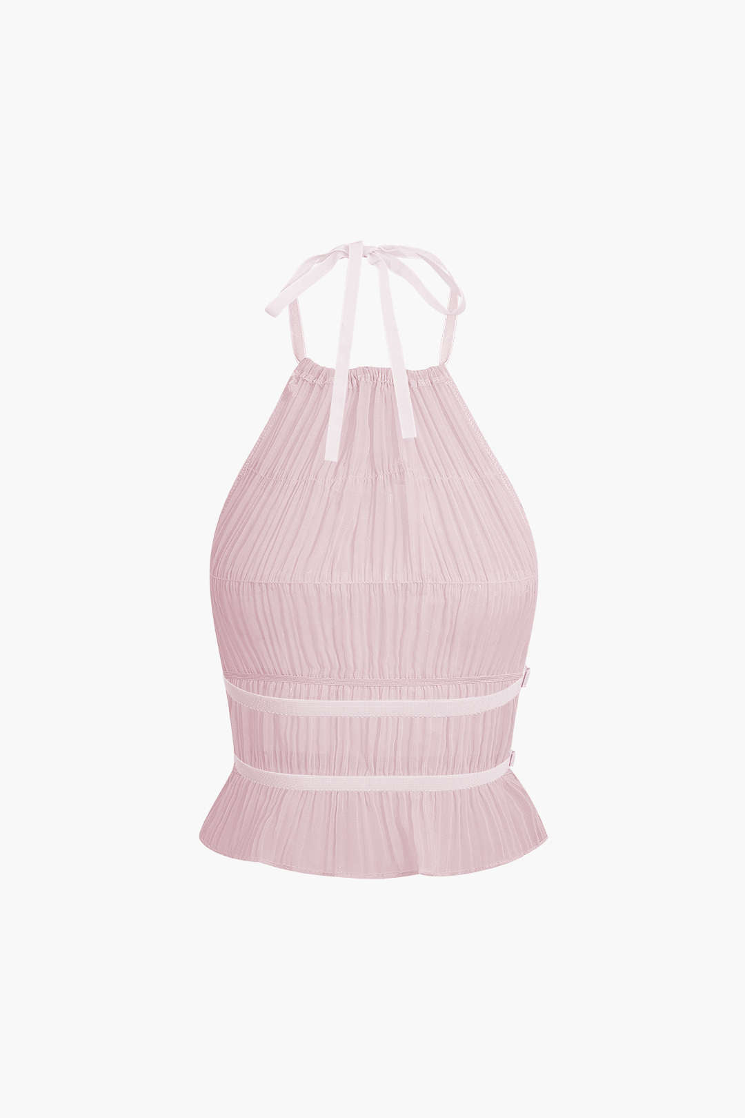 Vintage Neckholder Tie Ruched Backless Ruffle Top & Skirt Set