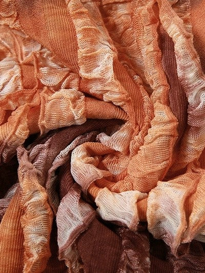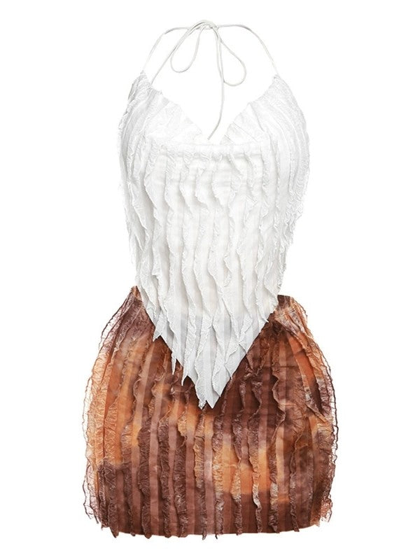 Vintage Ruffle Tie Halter Backless Cowl Neck Top & Tie Dye Mini Skirt Set