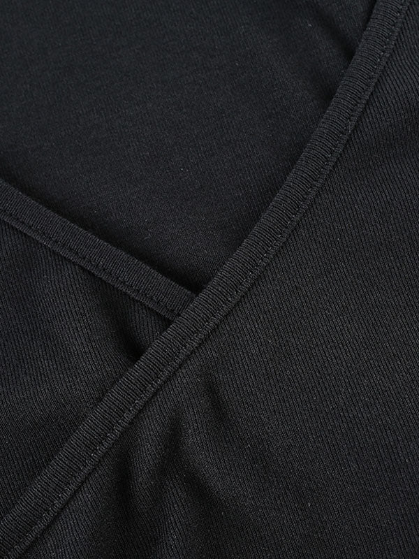Vintage Short Sleeve Wrap Crop Top with Tie Up