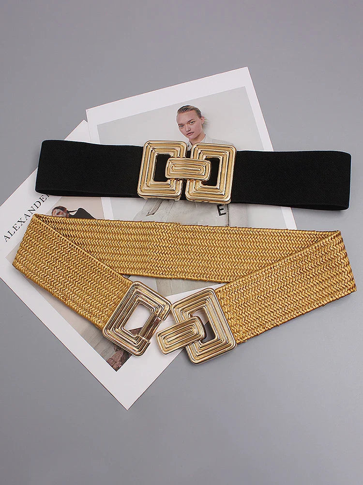 Vintage Square Buckle Woven Metallic Belts