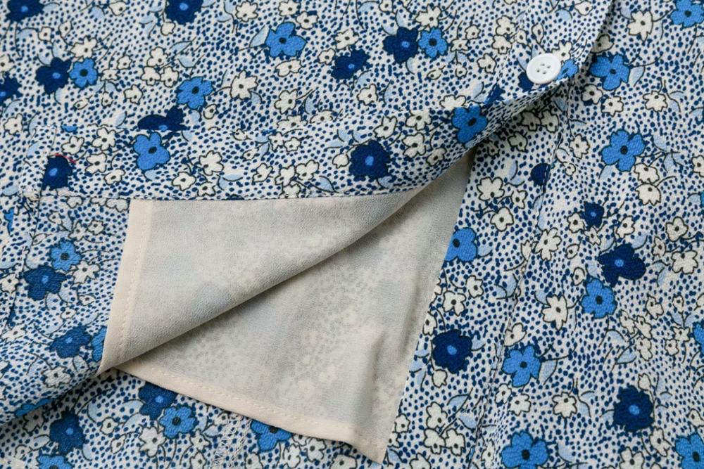 Violas Retro Floral Chiffon Midi Dress. Pretty french chic chiffon midi dress in vintage violas flower prints. Button up front and cute rounded collars. Fit at the top and flare at the bottom style. All button up for retro look or a couple of button open for casual chic style.