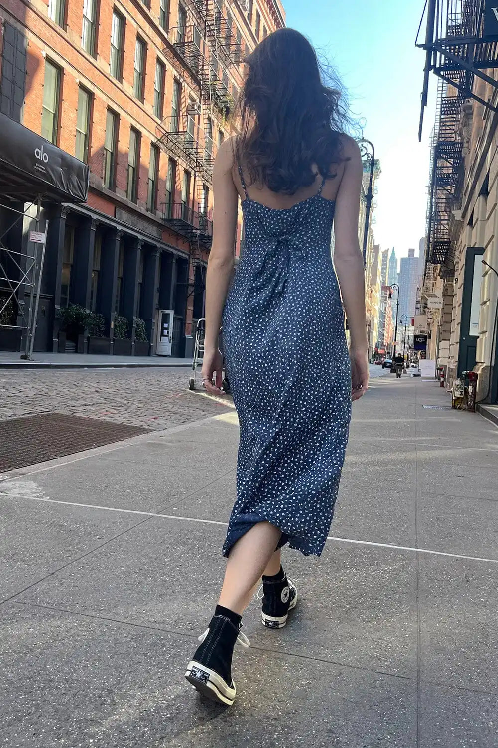 Floral Print Summer Ladies Slim A-line Long Female Cute Slim Midi Dresses