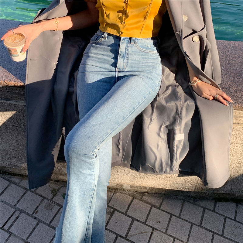 Casual High Waist Slim Flare Jeans High Street Vintage Stretchable Boot Cut Denim Pants