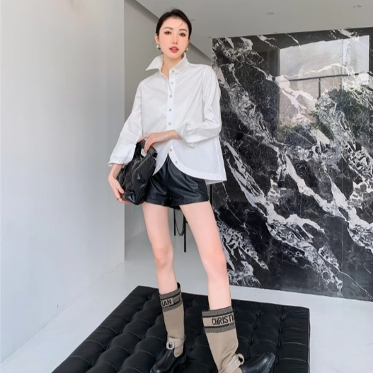 Add a fashionable touch to your wardrobe with the Yumie Arc Hem White Dress Shirt. The unique arc hem design adds a playful twist to this classic white shirt. Perfect for casual or formal occasions. this shirt is sure to make a statement and keep you looking stylish.